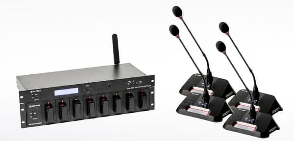 | ⚫ Clear LED bar and soft-type buttons. ⚫ Selectable Korean/English language. ⚫ Selectable chairperson unit and delegate unit. ⚫ Speech control of delegate unit with chairperson unit’s PRIO button. ⚫ Individual microphone level and speaker EQ adjustment. ⚫ USB-C type adapter charging or dedicated battery pack charger. ⚫ Battery power-saving mode. ⚫ Listening through built-in speaker or headphones and volume control. ⚫ 1-channel interpretation listening. ⚫ Can check speech time, battery, and reception status of stand unit on 1.54-inch OLED. |